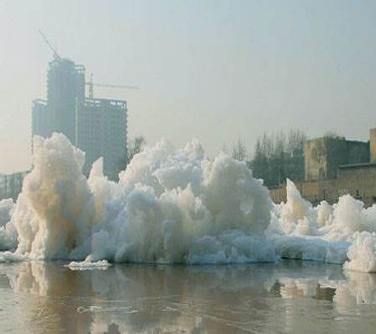 (圖為泡沫對環(huán)境產(chǎn)生嚴重的危害)